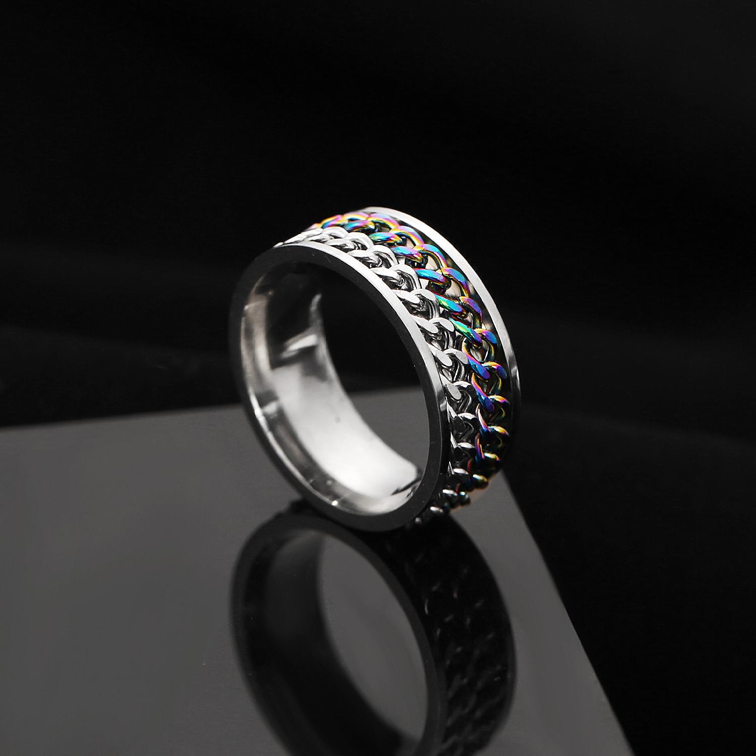 This sleek black Spinner Ring combines fashion with function. Designed with a rotating chain center, it helps relieve stress and anxiety while keeping your look effortlessly stylish. 💫